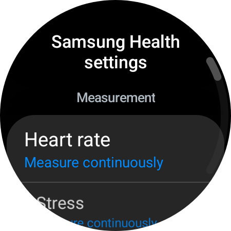 Next, scroll down to and tap “Health.” Then, tap the “Heart rate” and “Stress” categories and select “Measure continuously.”