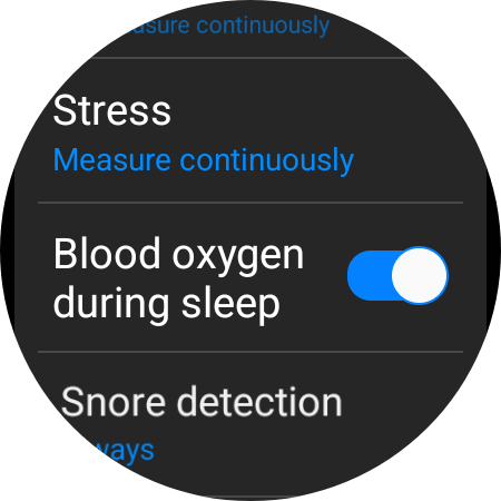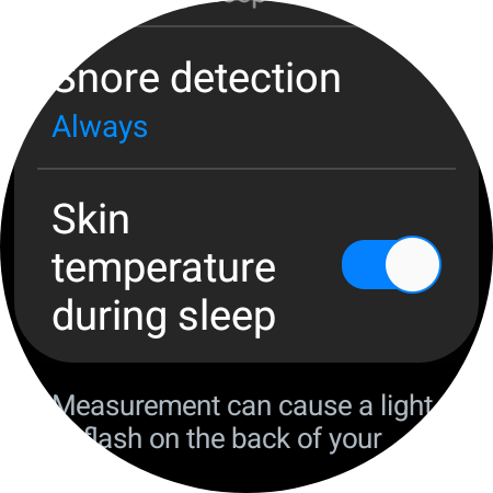 In addition, you should scroll down and tap “Snore detection” and then select “Always.” You can also tap the ON/OFF toggles to enable “Blood oxygen during sleep” and “Skin temperature during sleep.” Optionally, you can use the skin temperature sensor and data to enable “Predict period with skin temp.”