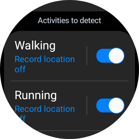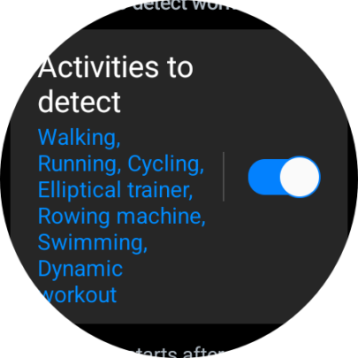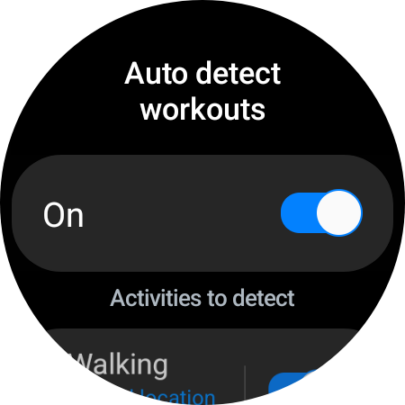 Lastly, you can enable the “Activities to detect” feature to make your Galaxy Watch automatically detect whenever you're starting an activity or workout. If you tap the “Activities to detect” option (not the ON/OFF toggle), you can enable or disable automatic detection for activities individually.