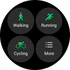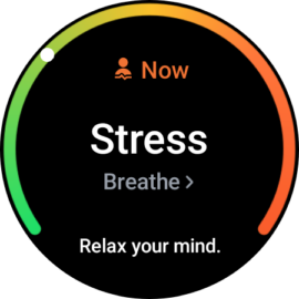 Tiles are like full-screen interactive widgets you can scroll through one by one by rotating the Galaxy Watch bezel (or virtual bezel) clockwise or swiping right-to-left on the watch face. Tiles are the “smart” in “smartwatch.” They allow users to track calories burned, sleep, weight, stress levels, heart rate, and more at a glance. Additional information can usually be accessed by tapping Tiles. Users can add or remove Tiles as they wish.