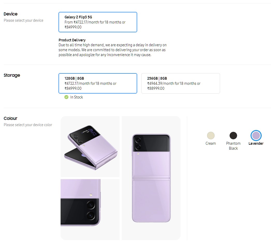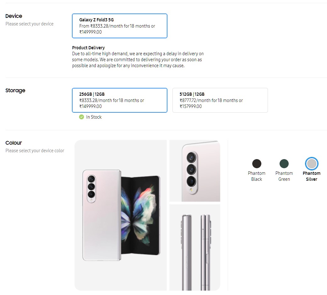The company has announced that the 128GB variant of the Galaxy Z Flip 3 will also be available in Lavender. The 256GB version of the Galaxy Z Fold 3 will be available in Phantom Silver. Samsung has already listed the new colors on its website. The new color variants will be available through third-party stores and retailers very soon.