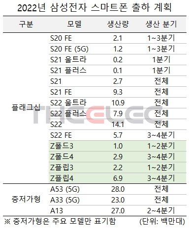 The report also claims that Samsung aims to produce close to 38 million Galaxy S22 series smartphones in 2022. The company could also be seeking to sell more than 9 million units of the Galaxy S21 FE, which is expected to go official in January 2022. When it comes to the Galaxy A series (Galaxy A13, Galaxy 33 5G, and Galaxy A53 5G), Samsung targets to manufacture 78 million units.