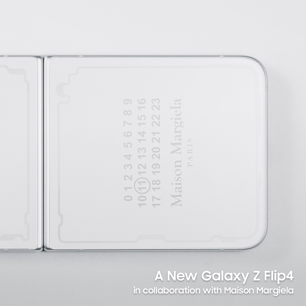 Samsung says that its new limited-edition version of the Galaxy Z Flip 4 has a design ethos that “marries perfectly with Maison Margiela’s design philosophy, rooted in defiance, subversion, and rejection of convention.” Every aspect of the phone has been designed to match Margiela’s originality and values. The phone comes in matte white, featuring a silver-white metal frame. There are a few elements in grey and translucent lines that signify the phone's internal circuits.