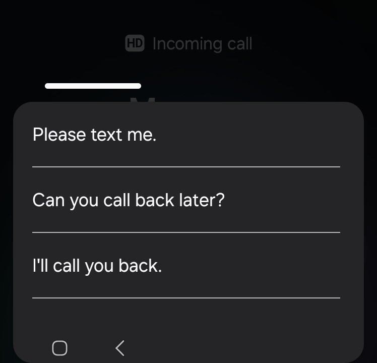 Answering calls on the Flip 6 cover screen works the same as it does on the main display. You can swipe right and left to accept or reject calls. You can also swipe up to decline calls with a quick text response. Three responses come preloaded, but you can add new ones from the Phone app's settings.