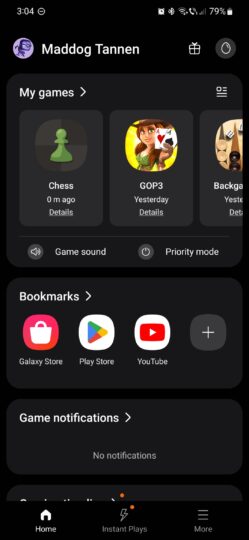 To add a custom bookmark, first access Game Launcher. Then tap the “+” button in the “Bookmarks” section.