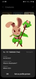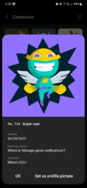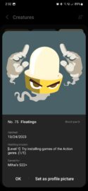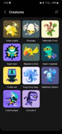 You can view your creature collection by tapping the “Creatures” button. Here, you can tap on each a creature to reveal more details, such as its full name, its number, blood type, when it hatched, and which mission helped it hatch. And, of course, here is also where you can set a creature as your profile picture.