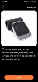 Inside the Monitor app, tapping the blood pressure tag allows you to monitor blood pressure data collected by your smartwatch. However, you can use this feature only if you calibrate your watch with the help of a medical device. If you have a medical blood-pressure device at your disposal, the Samsung app will guide you through the calibration process.