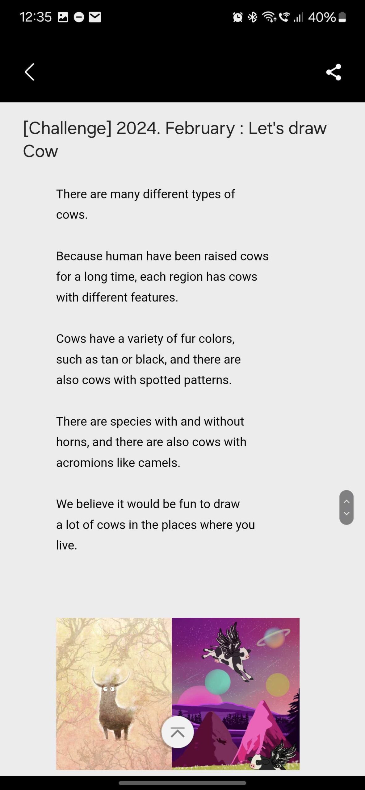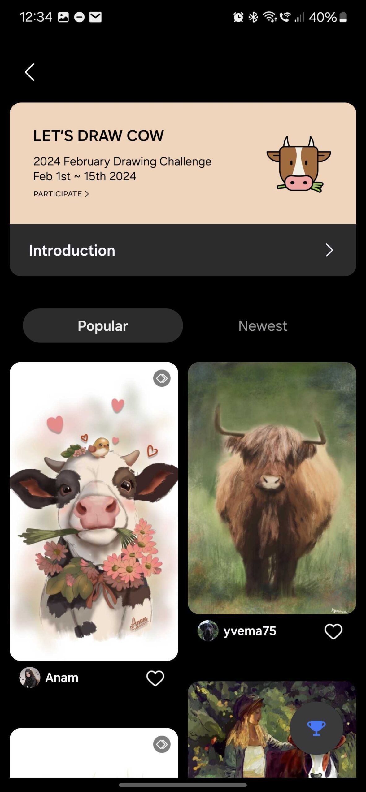 The theme at the beginning of February is “Let's Draw Cow.” And, as usual, you can participate by opening the PENUP app on your Galaxy device, accessing the “Challenges” tab, selecting the latest challenge, and tapping the trophy-shaped button.