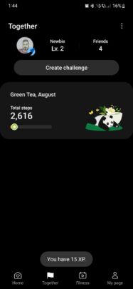 But if you want to access community features in Samsung Health, all you have to do is access the “Together” tab. From this section, you can participate in challenges with friends from your Contacts list and other Samsung Health users around the globe.