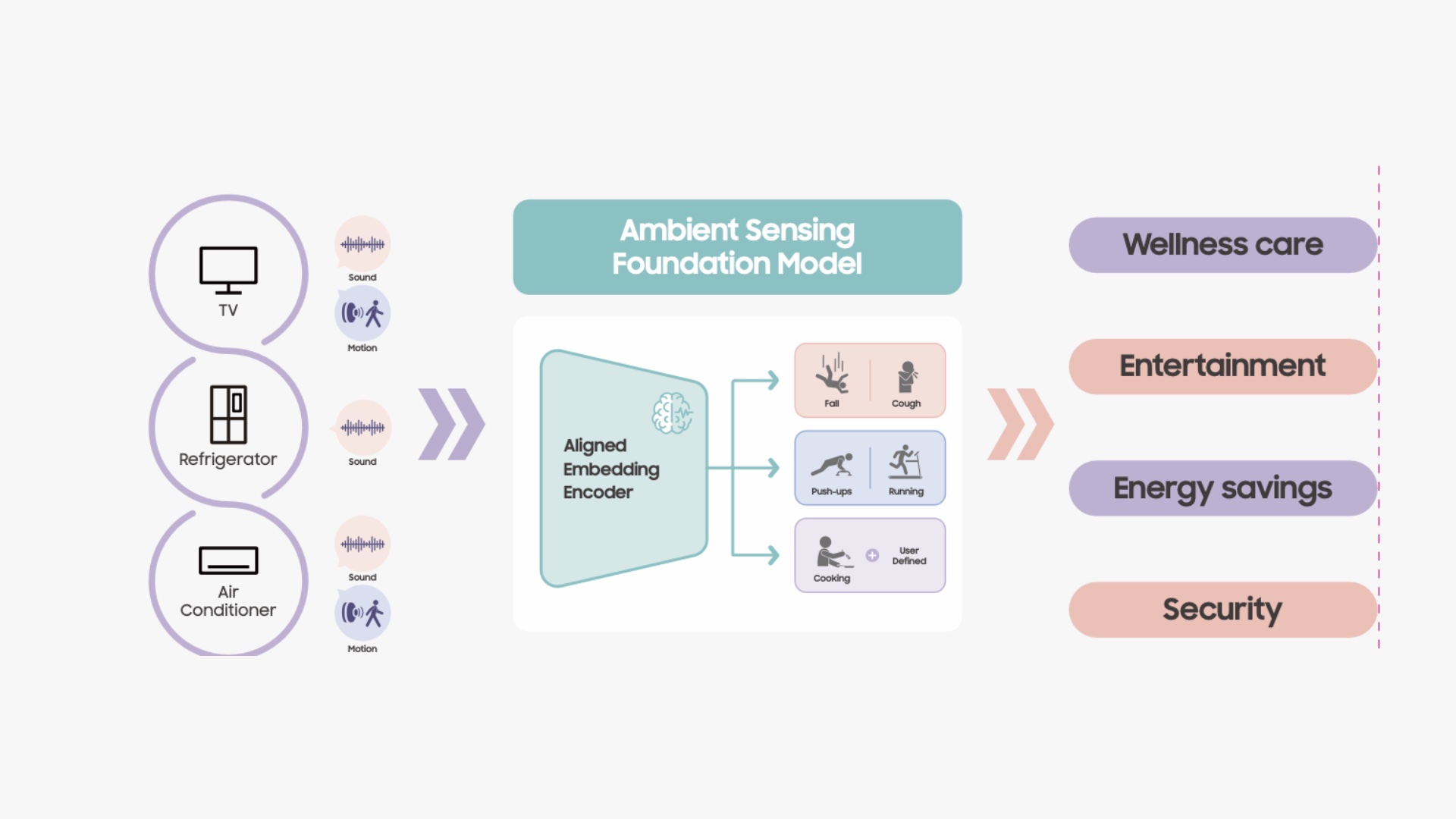 Samsung said that it aims to use sensors (light, motion, and sound) inside its devices, such as ACs, TVs, and refrigerators, to understand what you are doing or to get an accurate picture of your home. Using that data, it wants its devices to automatically adapt to your needs proactively. This mechanism is called Ambient Sensing.