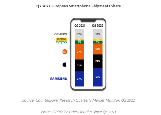 Although companies like Xiaomi, Oppo, and Realme have suffered losses amid the declining smartphone market in Europe, Samsung and Apple were able to improve their positions compared to where they were last year. The two OEMs suffered some setbacks compared to the previous quarter, but both companies posted improved year-on-year performance.