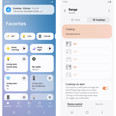 As shown in the screenshot below, the SmartThings mobile app allows Galaxy phone users to check which burners are active. You certainly can't do that with the old non-smart stove.