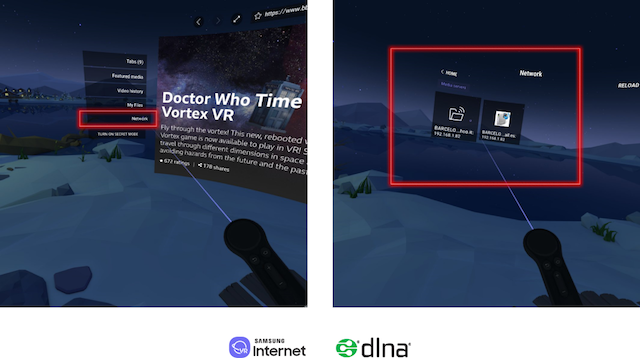 DLNA or “Digital Living Network Alliance” is an industry-wide standard for sharing data over a network. It will enable users to stream videos and images from DLNA servers such as PCs, game consoles and mobile devices to Samsung Internet for Gear VR.