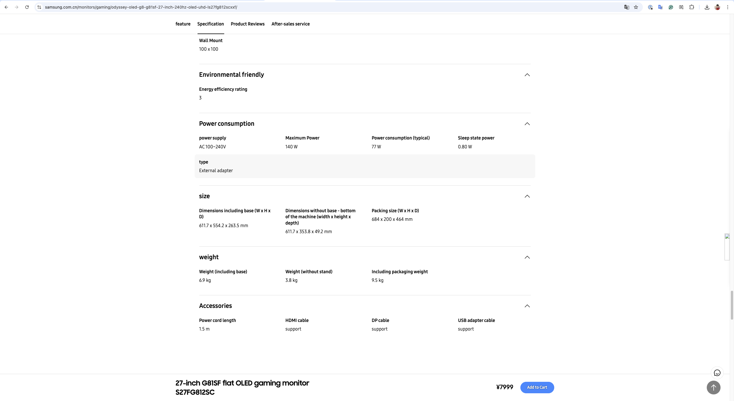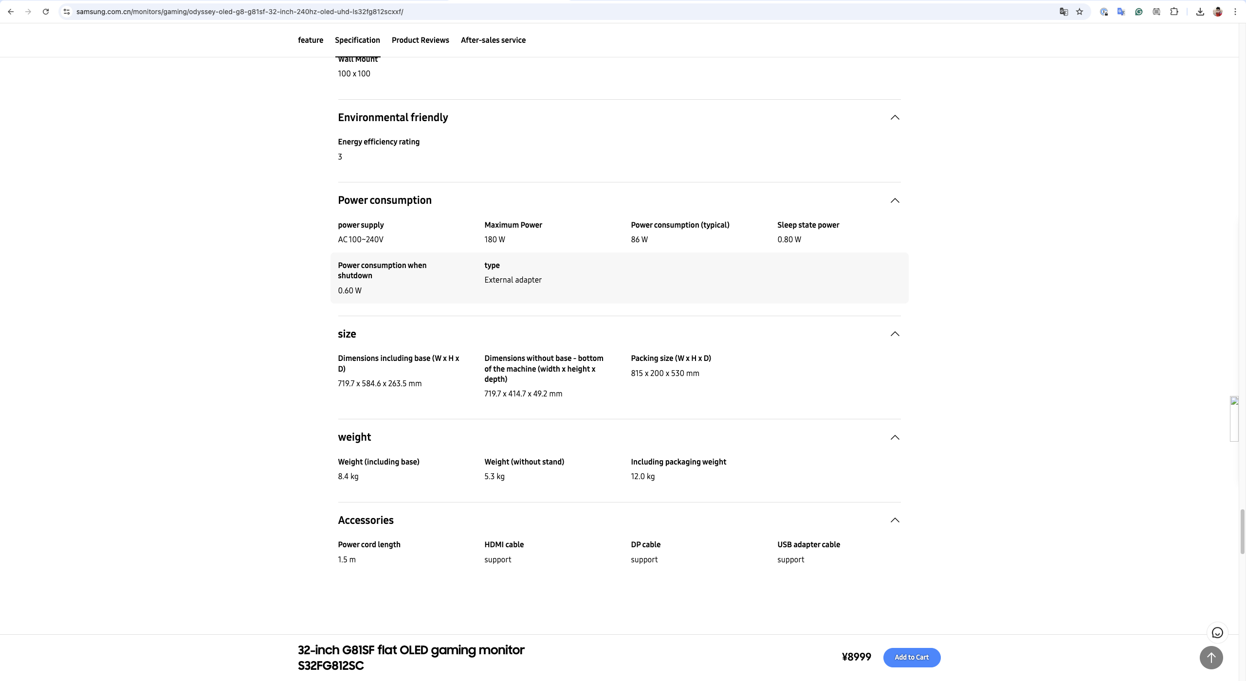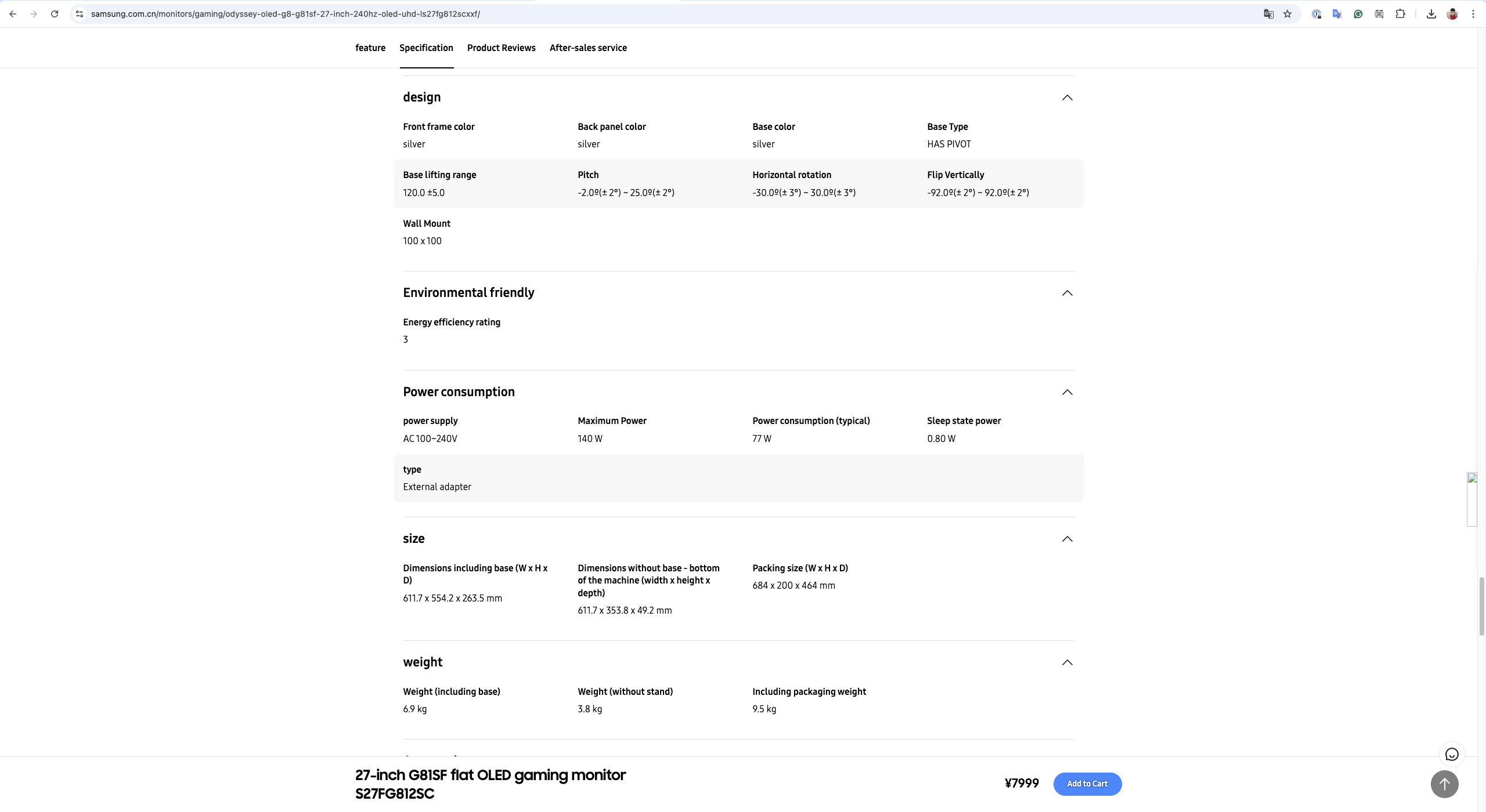 It has one DisplayPort 1.4 port, two HDMI 2.1 ports, three USB ports, and a 3.5mm audio jack. The stand that it comes with, offer adjustment for height, tilt, swivel, and pivot. You get DisplayPort, HDMI, USB, and power cables in the box. You can check out finer details about the monitor in the screenshots below, which we have taken from the brand’s website for China.