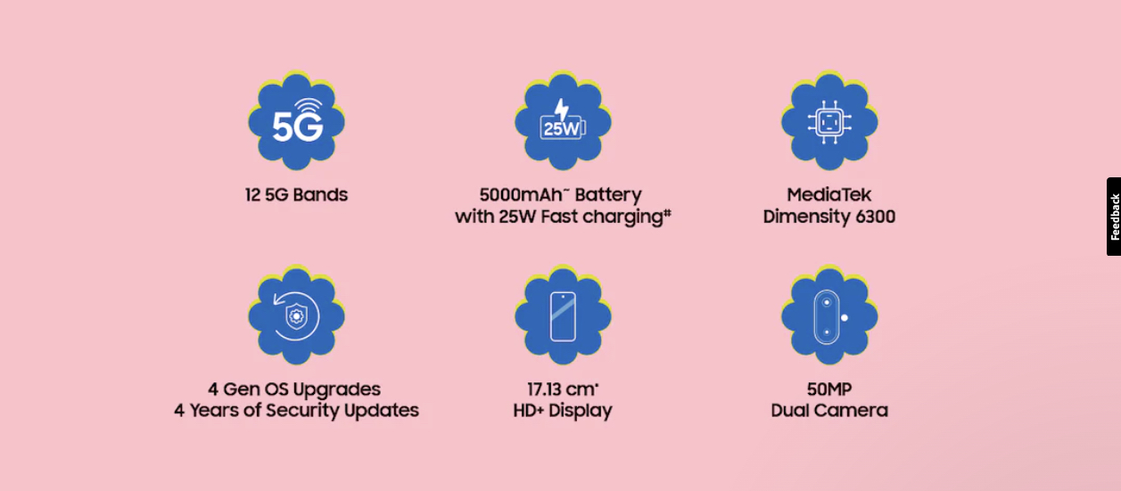 Samsung makes F-series devices exclusively for Flipkart, and the Galaxy F06 5G is no different. It will be available exclusively through the e-commerce platform starting on 20 February 2025. The brand is offering the phone in two colors, Bahama Blue and Lit Violet.