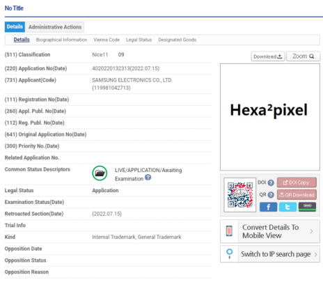 Samsung recently applied to secure the “Hexa2pixel” trademark with KIPRIS in Korea, and the same trademark also popped up in Europe via TMView. (via GalaxyClub)