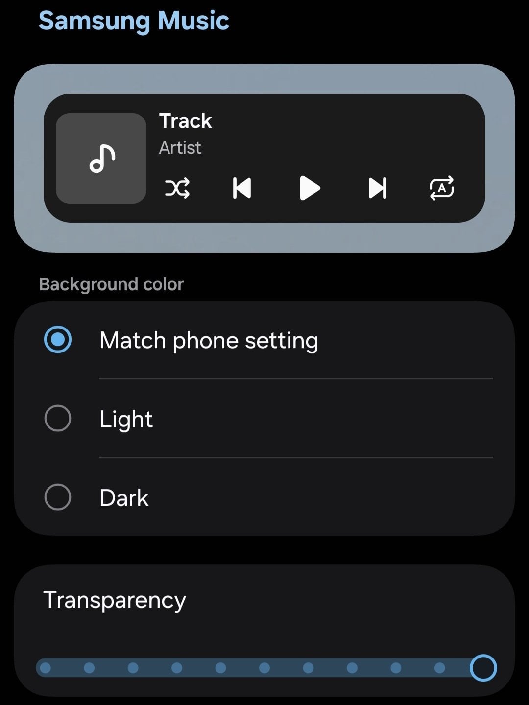 Samsung has released an update to the Samsung Music app for Galaxy phones. It adds transparency option to home screen widget.