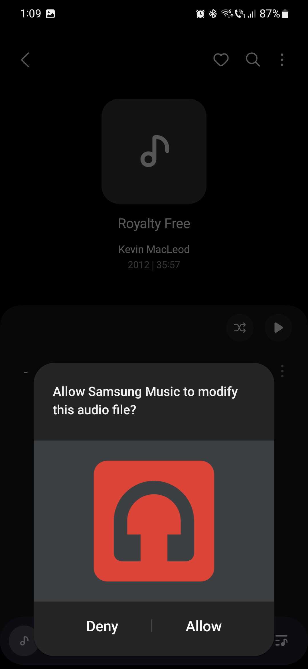 To add custom cover art, go to the Albums tab, select an album, tap the menu button in the upper-right corner, and select “Change cover image.” You'll then have to choose “Gallery” or “Camera,” after which you'll need to “Allow Samsung Music to modify this audio file.”