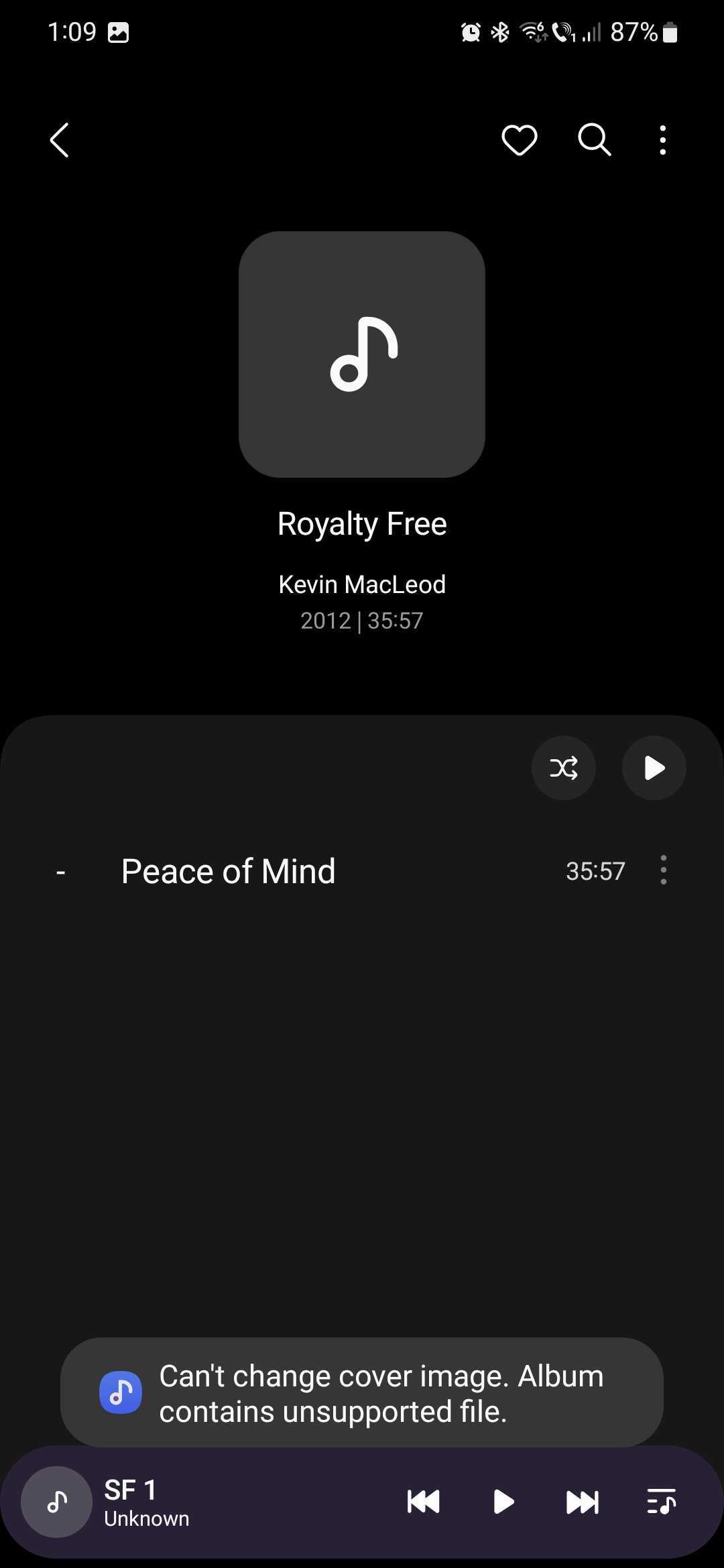 After you select an image or take a photo to use as the album cover, you may run into some issues. The custom album cover feature in Samsung Music has some restrictions, and you might get an error message saying: