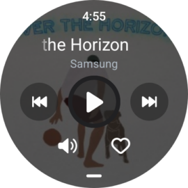 In addition to Galaxy phones and tablets, Samsung Music is also available on Galaxy Watches, which once again, acts as a music player for audio files stored on the internal memory of the smartwatch. The smartwatch app has a simpler UI with way fewer options and settings, but it serves its function, offering playback controls, shuffle and repeat options, volume controls, and access to your content library.