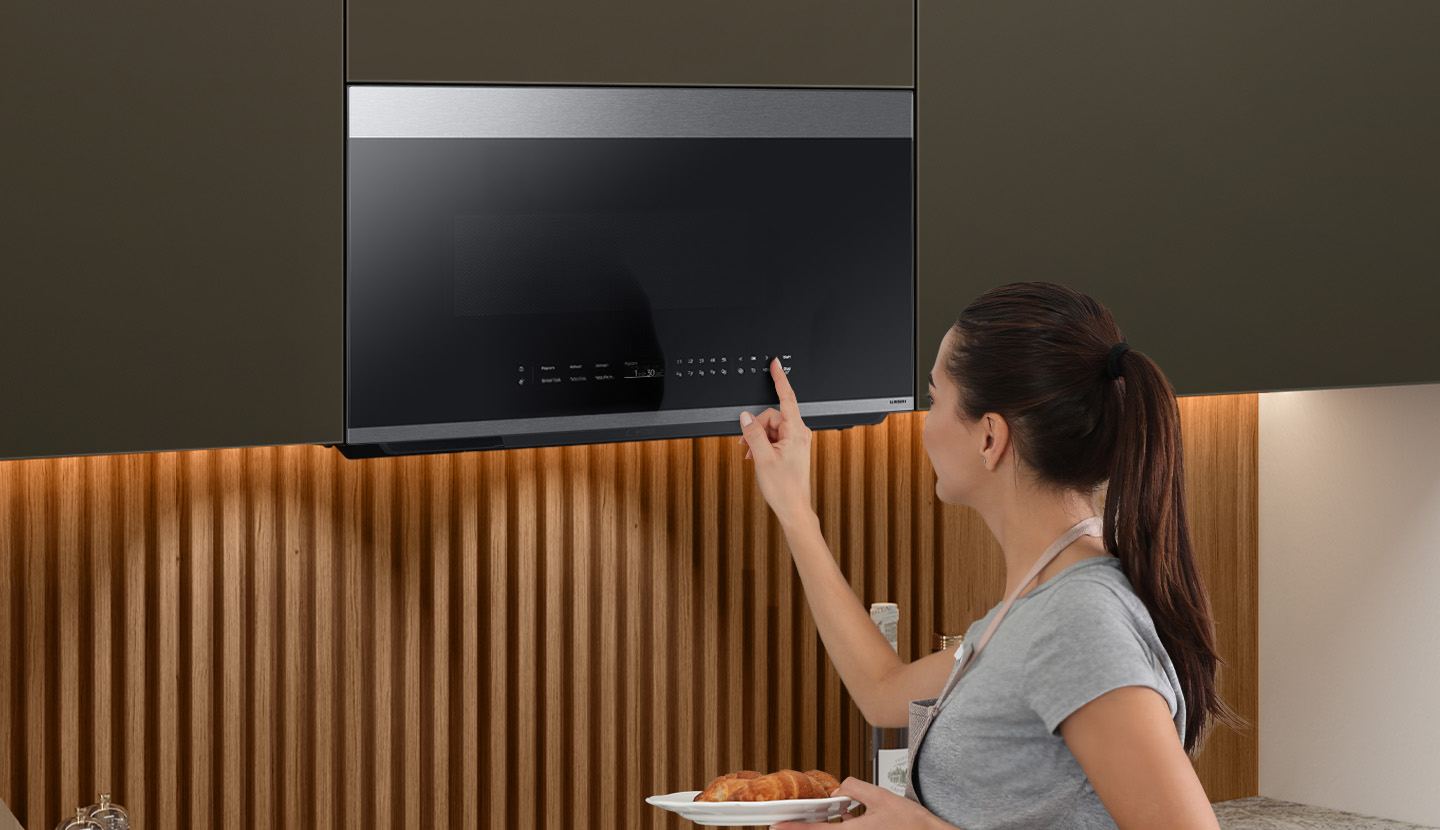 For example, the microwave can sync with compatible Samsung ranges and cooktops to turn ventilation and lights on or off automatically. Likewise, users can adjust ventilation speed and cooking time and receive notifications when heating or cooking is finished right on their smartphones.