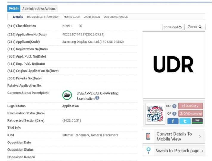 UDR, on the other hand, could be Samsung's evolutionary step after HDR. Granted, as of now, there's no way to tell what exactly UDR stands for. But the application was filed by Samsung Display, and the trademarked acronym sounds very similar to HDR. It might be a stretch, but it's the only reasonable explanation so far, given the origin of the trademark and the lack of detailed information.