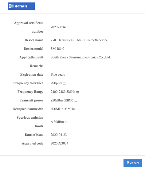 The certification document reveals that the upcoming Galaxy Watch will feature 2.4GHz Wi-Fi and Bluetooth. We expect the SM-R840 and SM-R850 to be two screen size variants of the smartwatch with Wi-Fi only connectivity, while the SM-R845 and the SM-R855 could be their Wi-Fi + LTE variants. The upcoming smartwatch from Samsung will be powered by a 330mAh battery, which is bigger than the 247mAh battery inside the 40mm Galaxy Watch Active 2.