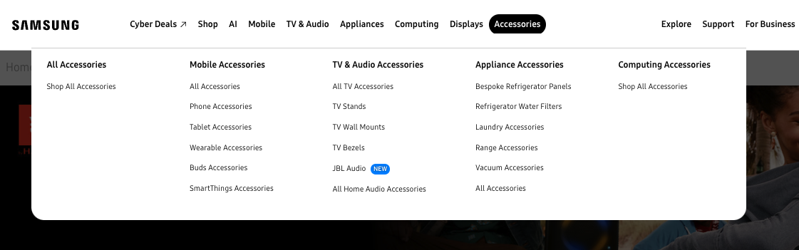Samsung recently added a selection of JBL audio devices to its online stores in regions like the USA and several European countries. This time, customers can buy these products straight from Samsung's e-shop without getting redirected to JBL's. Samsung labeled this JBL category “New,” as seen below.