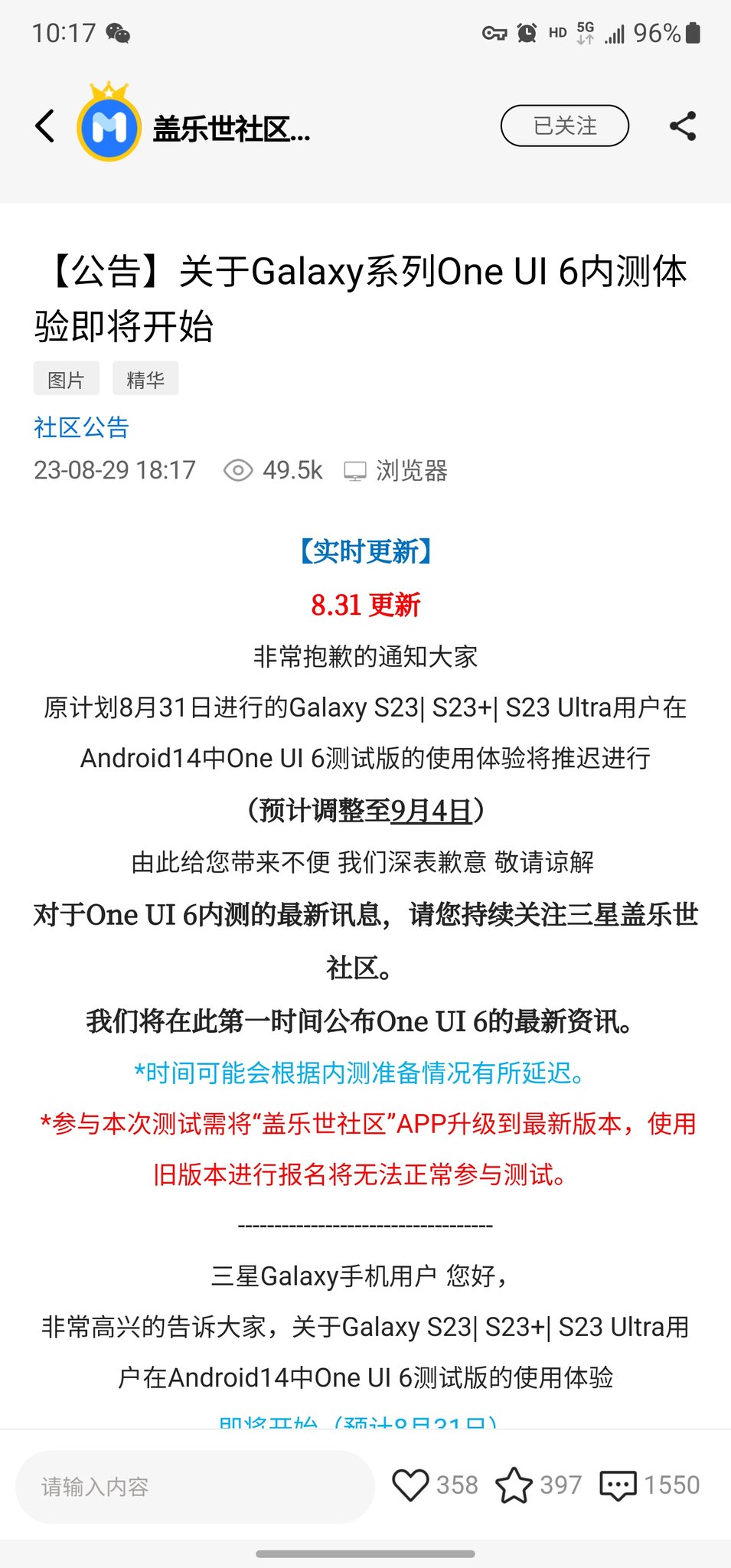 Samsung has now announced (via @IceUniverse) in its Community Forum in China that it has delayed the release of the One UI 6.0 Beta update from August 31 to September 4. This is a delay of four days, and the update will now arrive early next week. We are not sure why Samsung is delaying the release of the next One UI 6.0 beta update, but it would likely be due to bugs.