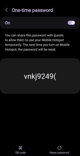 The name itself reveals what this feature is all about: you can now set a one-time password that allows someone temporary access to your phone's mobile hotspot connection. The one-time password is separate from the general password you can set for the mobile hotspot and is reset the next time the mobile hotspot is turned on.