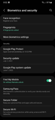 Furthermore, you can check for “Google Play system updates” from the same Biometrics and security menu.