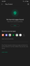 To perform a Google Play Protect scan and check to see if you have malicious apps installed on your phone via the Play Store, tap “Google Play Protect” in the “Biometrics and security” menu, then tap “Scan.”