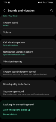 Open the Settings app on your Galaxy phone or tablet and access “Sound and vibration.” Then, scroll all the way down and tap “Separate app sound.”