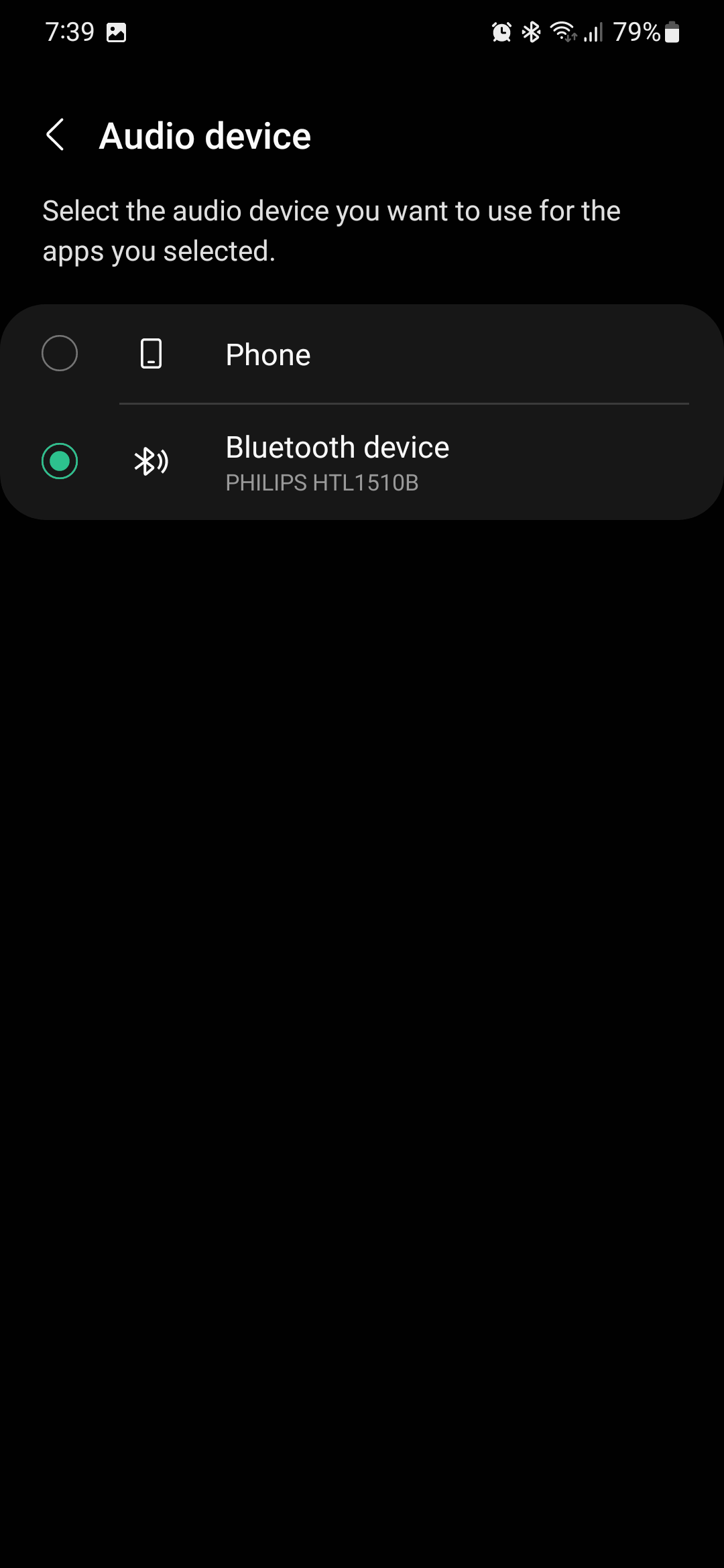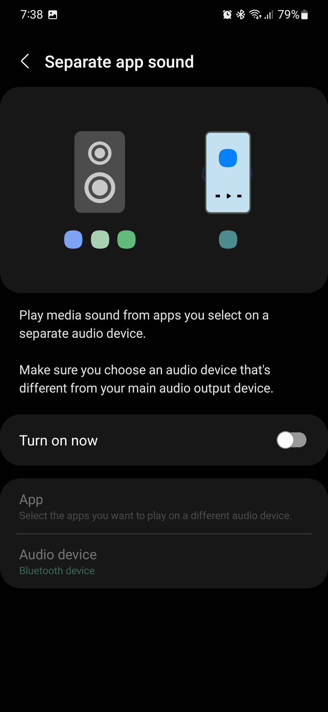 Finally, in the Separate App Sound menu, tap “Audio device” and select the Bluetooth speaker you want to be used by the apps you selected. That's it! You're all set!