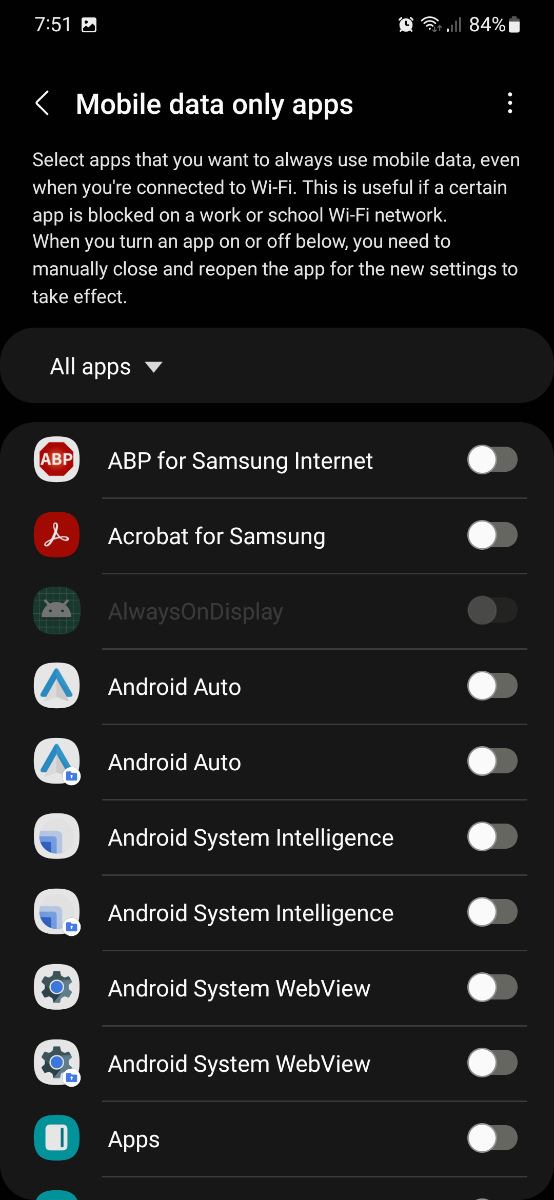 Forcing apps to always use mobile data can be useful if you often connect to a Wi-Fi network that blocks access to certain apps, such as a school or work network.