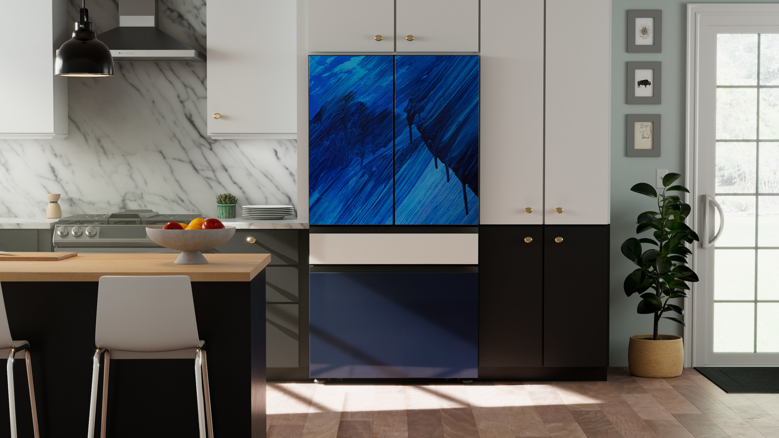 Samsung and the American home appliance retailer Lowe's, have employed the skills of three artists to create the collection of custom panels — Alexa Meade, Amber Vittoria, and Dominique Brown. Lowe's encourages Bespoke customers to use these three pairs of exclusive custom panels as they come or mix and match them with their personalized colors and designs at home. (via PRNewswire)