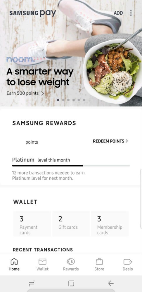 There's a new bottom navigation bar now in Samsung Pay which gives it a clean and traditional look. The navigation bar can now be used to view the wallet, check up on rewards, visit the Pay store and also to find out new deals.