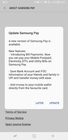 The company continues to add more features for users in India. It added support for UPI payments via Bharat QR codes a few weeks back. Samsung Pay now allows users in India to pay their bills via the app. The updated Samsung Pay app is now rolling out to users in India.