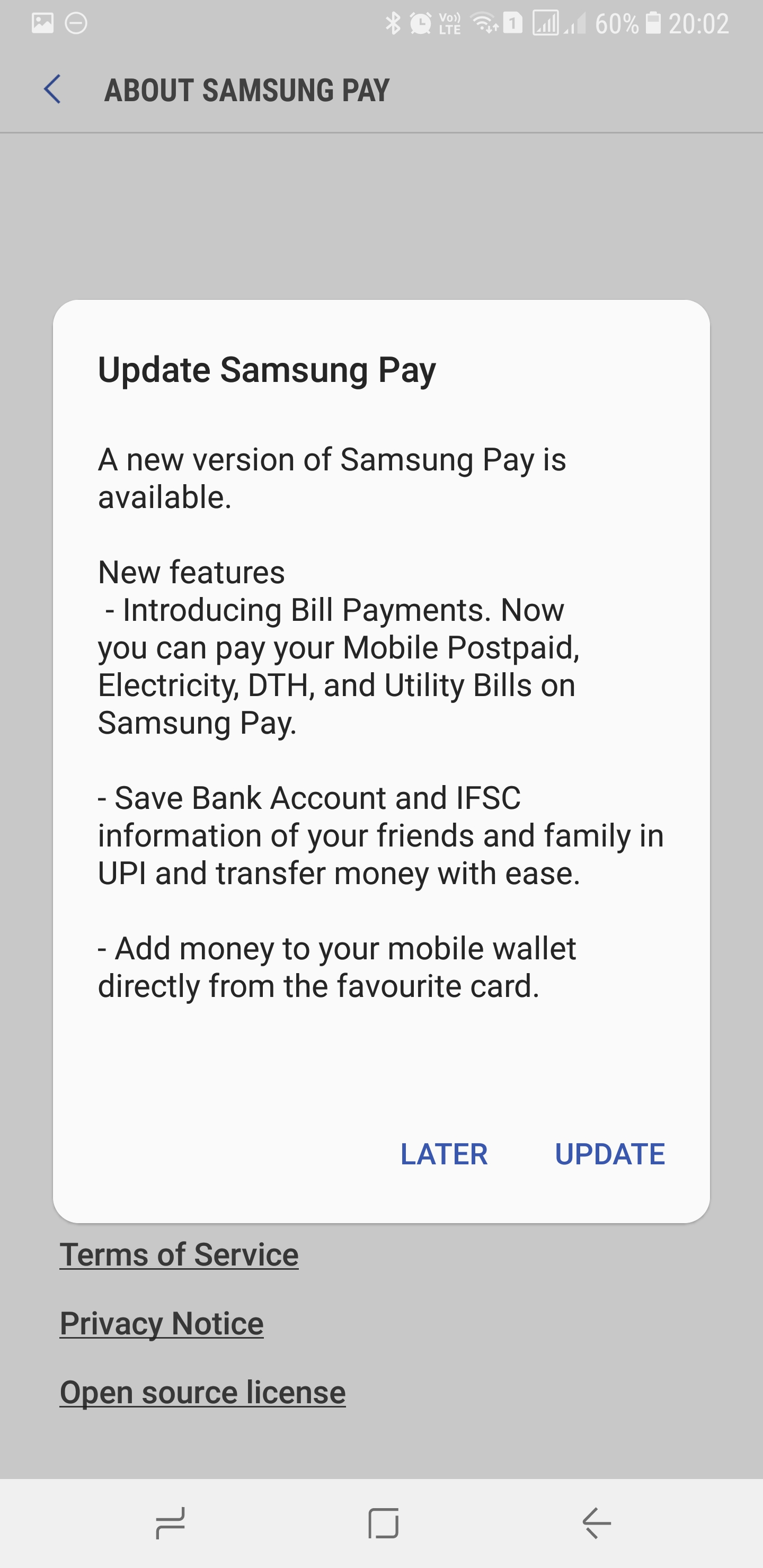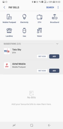 The latest version of Samsung Pay introduces the Bill Payments feature. It lets users pay their mobile postpaid, electricity, DTH and utility bills using Samsung Pay.