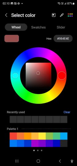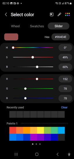 The color picker has been enhanced as well. There is a new slider section in the color picker where you can use sliders to manually finetune things like hue, saturation, and red, green, and blue values. Oh, and you can also create custom color palettes.