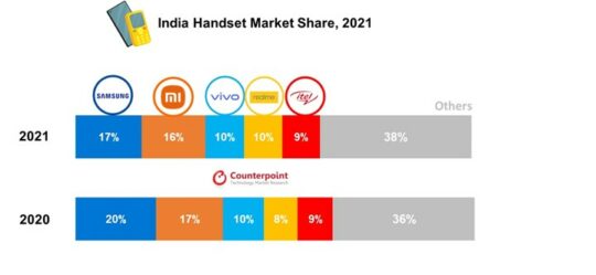 Overall, Samsung was the 2nd largest smartphone OEM in India in 2021, with an 18% market share. Xiaomi led the Indian market with 24%. However, in the feature phone market, Samsung maintained its lead with a 17% market share, and Xiaomi remained the 2nd-largest brand after capturing 16% of the market in 2021.