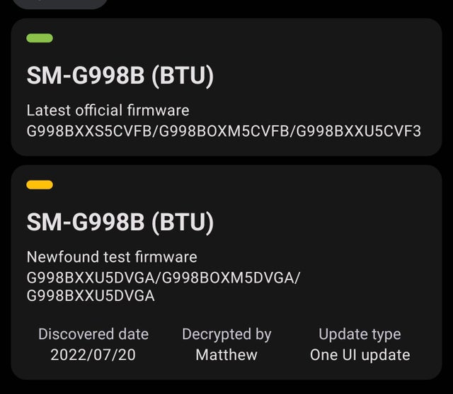 The One UI 4.1.1 update, discovered by a Reddit user, carries firmware version G998BXXU5DVGA. However, nobody outside of Samsung's trusted circle of employees can download and test this One UI 4.1.1 beta firmware on their Galaxy S21 Ultras. The general public will have to wait for a public One UI 4.1.1 beta program to launch before anyone can test Samsung's pre-release firmware.