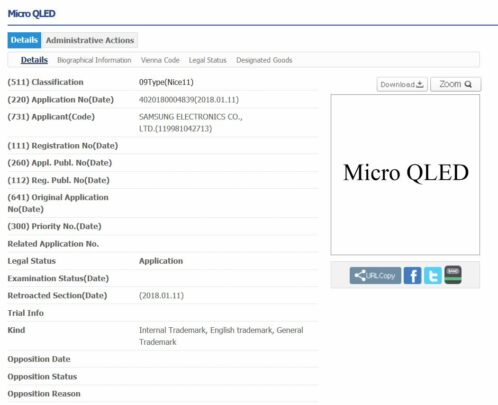Interestingly, even before the MicroLED TVs are released and reviewed, Samsung has filed for a “Micro QLED” trademark in South Korea. On January 11, 2018, Samsung filed two trademark applications with the Korean Intellectual Property Office. While one of them is for the 8K QLED TV which was shown at CES 2018, the other application is for Micro QLED which hasn’t been announced or showcased anywhere so far. The MicroLED tech announced by Samsung at CES 2018 is not part of these applications.