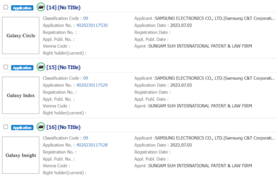 The new Galaxy One, Galaxy Pulse, and Galaxy Rhythm trademarks were discovered at KIPRIS by GalaxyClub. And interestingly enough, while the Galaxy Circle, Galaxy Index, and Galaxy Insight shared the “smart rings, smartwatches, smartphones, and wearable computers” designations, the trademark applications for the Galaxy One, Pulse, and Rhythm classify them as “wearables, such as smart rings, bracelets, necklaces, and glasses.”