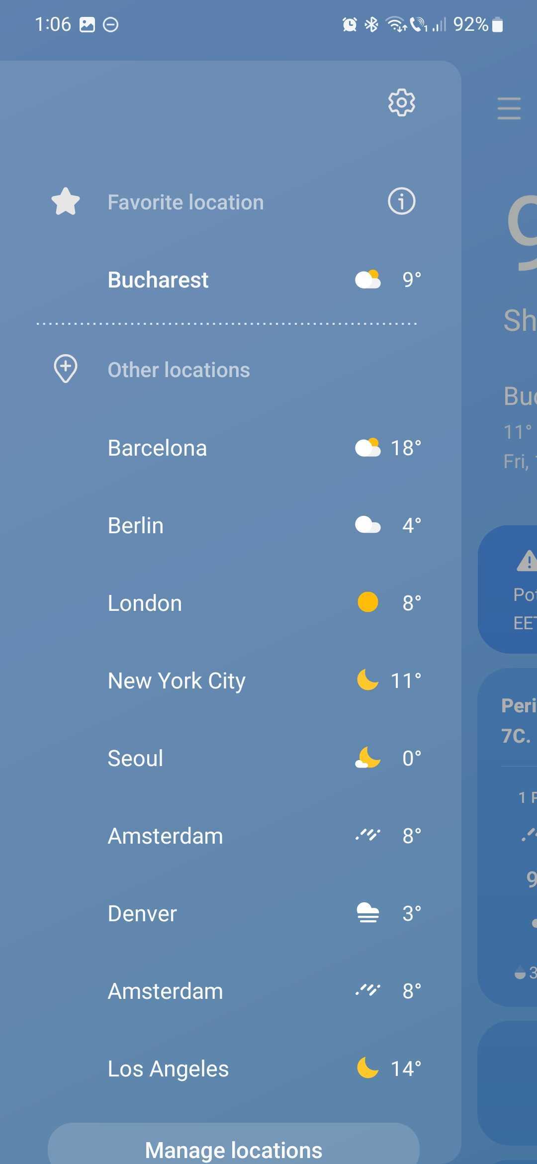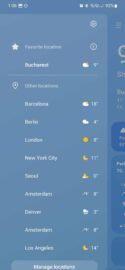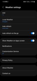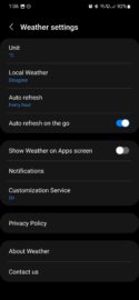 To hide the Samsung Weather app shortcut, open the app and tap the so-called hamburger menu button located in the upper-left corner of the app's home screen. Then, tap the cog-shaped icon to access the app's Settings menu. And lastly, tap the “Show Weather on Apps screen” toggle.