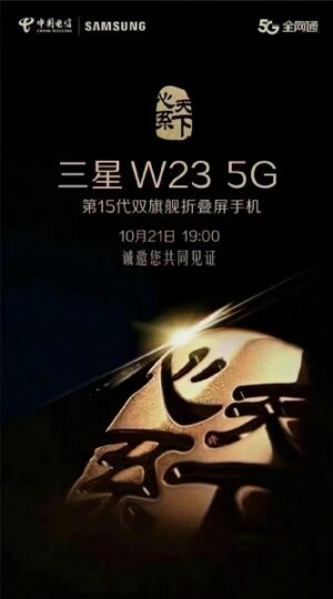 As is tradition, Samsung will rename the Galaxy Z Fold 4 for China using the “W” branding. The revamped model is called the Samsung W23 5G and will be going on sale through China Telecom. According to a poster leaked recently, Samsung and China Telecom will bring the W23 to the masses on October 21.