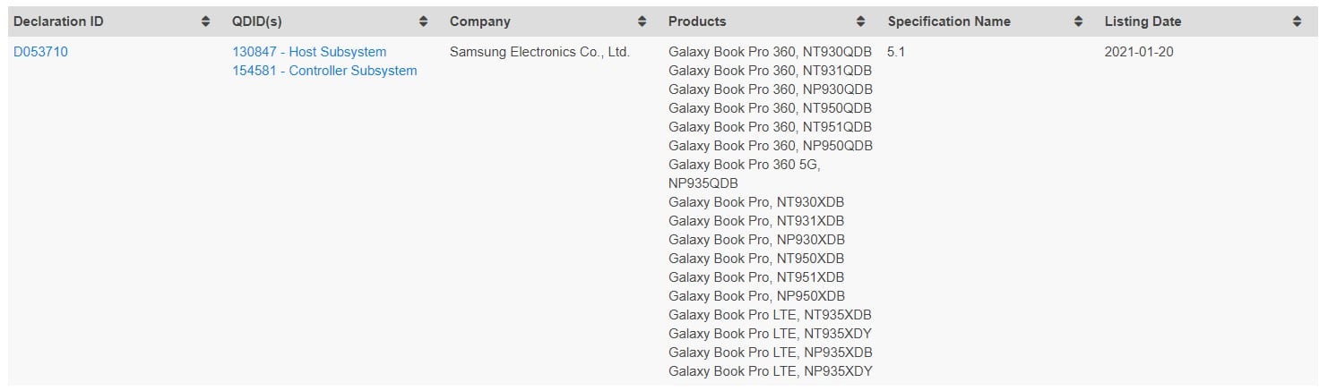 The company has received certification from Bluetooth SIG for two new laptops: Galaxy Book Pro and the Galaxy Book Pro 360. Both laptop models feature Bluetooth 5.1 as per the certification documents. Apparently, the Galaxy Book Pro will be available in an LTE variant as well, and the Galaxy Book Pro 360 will also come in a 5G version.