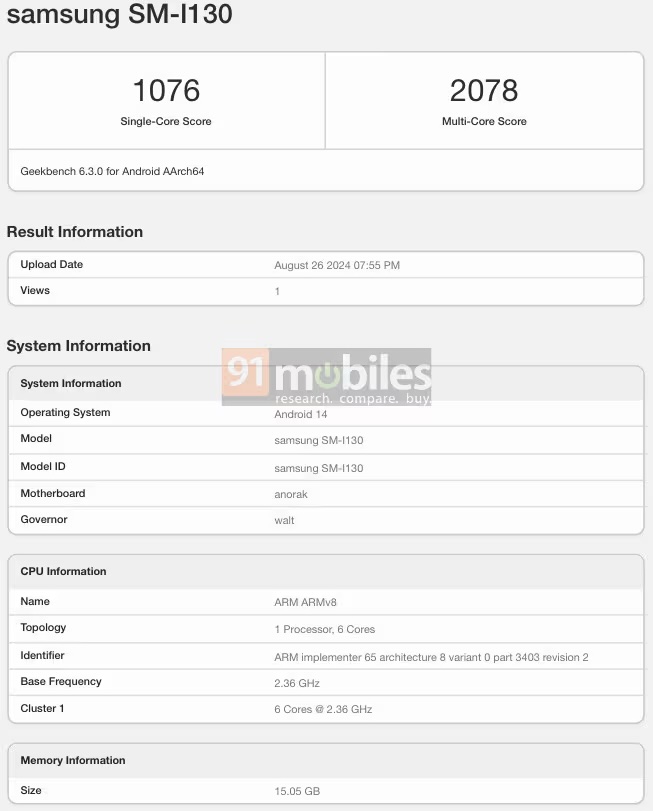 A new Samsung device with model number SM-I130 was recently spotted (via 91Mobiles) in Geekbench's database. According to an earlier report, the model number of Samsung's XR headset would be SM-I130, so it is confirmed that the device spotted in Geekbench is the South Korean firm's upcoming extended reality/mixed-reality device. The device uses the Snapdragon XR2+ Gen 2 chip announced earlier this year along with 16GB RAM and Android 14-based OS. It scored 1,076 points in the single-core test and 2,078 points in the multi-core test.