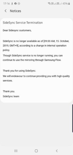 As to why Samsung has decided to axe SideSync, well, the app’s demise doesn’t come as a surprise given its lack of support for the Galaxy S9 a year ago. This doesn't seem to be a case of getting rid of a useful feature without offering an alternative. It’s more of a decision to streamline the platforms and integrate some of SideSync’s features into the newer Samsung Flow application.