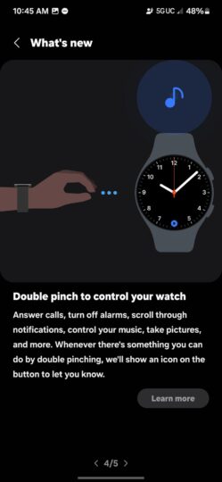 These images give us a look at things such as the redesigned Quick Panel and notification cards, the new default font, double pinch actions for controlling the watch, the Energy Score feature, and more. They also reveal that the Always On Display is now touch sensitive, so you can tap notifications or swipe without having to first wake up the screen.